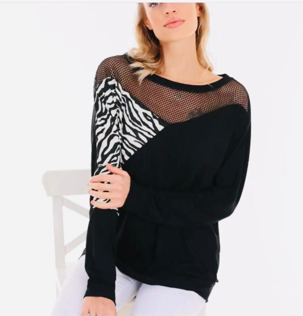 SİYAH  BEYAZ  FİLE  DETAYLI  BLUZ